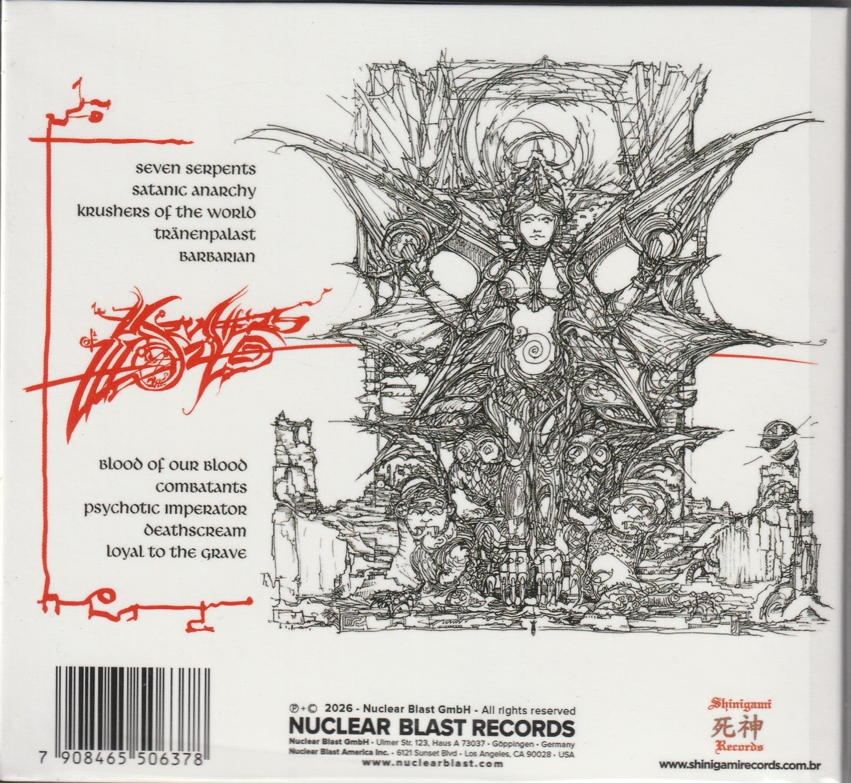 The sixteenth album by the German Thrash Metal band, released nationally in 2026, featuring a special guest appearance by Britta Görtz (Hiraes) on the track ‘Tränenpalast’, a song that pays homage to Dario Argento's film “Suspiria”, a double digipak CD with a sleeve and spare back cover. The second CD contains Krushing Classics: 1985-1990 (live tracks). Double digisleeve CD.
